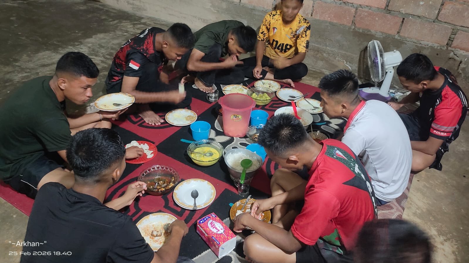 Walaupun jauh dari keluarga, suasana hangat dan kekeluargaan sangat terasa ketika seluruh anggota Satgas menikmati hidangan sahur yang sederhana secara kompak. Momen ini tidak hanya sekedar untuk mengisi tenaga di saat sahur, tetapi juga sebagai ajang untuk saling memberi dukungan dan menjaga kekompakan tim sebelum melanjutkan aktivitas mereka di lapangan.