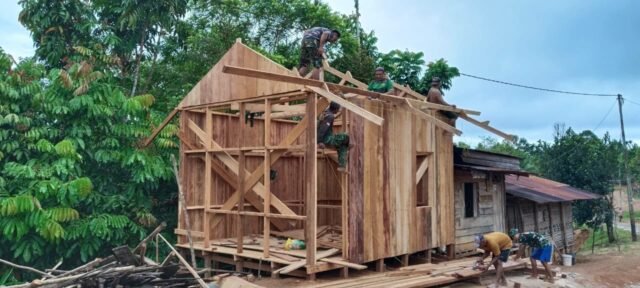 Suasana kebersamaan tampak kuat di lokasi kegiatan. Prajurit TNI dan masyarakat bahu-membahu mengangkat, memotong, dan memasang papan kayu sebagai dinding rumah. Progres pembangunan RTLH tersebut kini menunjukkan hasil menggembirakan.