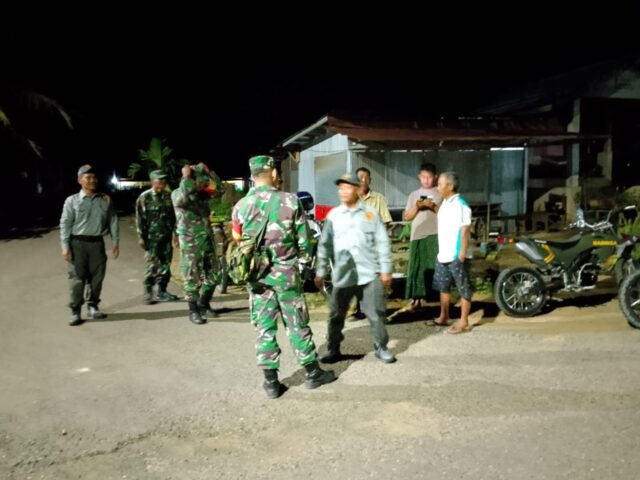 TAPIN – Kondisi lingkungan yang aman dan kondusif di Desa Matang Batas, Kecamatan Hatungun, tidak lepas dari peran patroli rutin yang dilakukan aparat TNI bersama komponen pendukung. Selasa (23/09) malam, Babinsa Koramil 1010-04/Binuang, Serka Roziqin, memimpin kegiatan patroli sekaligus posko mitigasi.