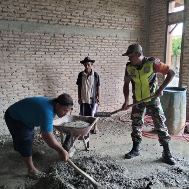 Sungaimas – Dalam rangka mempererat kemanunggalan TNI dengan rakyat, Babinsa Koramil 01/Sungaimas Kodim 0105/Aceh Barat, jajaran Korem 012/Teuku Umar, Serda Yuslianto melaksanakan kegiatan karya bakti membantu warga binaan mengaduk semen untuk pekerjaan plester rumah di Desa Geudong, Kecamatan Sungaimas, Kabupaten Aceh Barat, Rabu (15/10/2025).