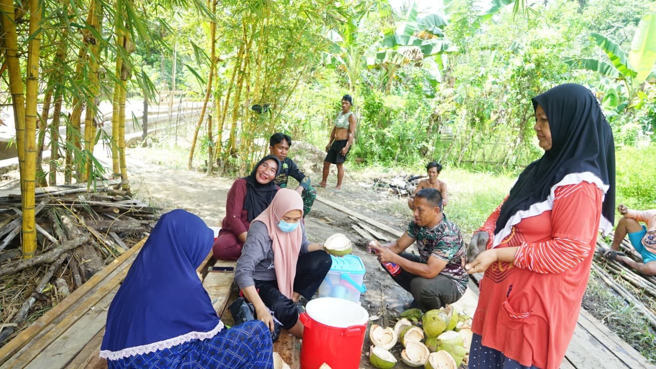Kepedulian Masyarakat, Ibu-Ibu Sambuli Siapkan Minuman Segar untuk Satgas TMMD