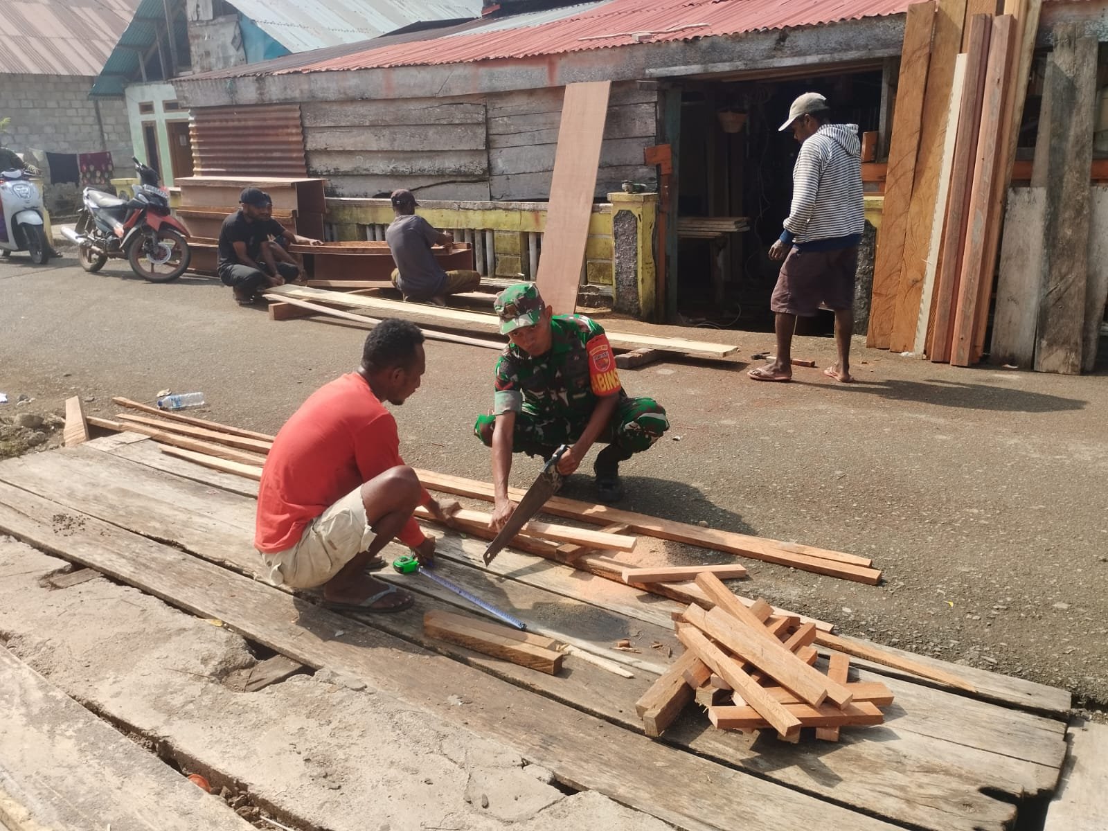 Kepedulian TNI: Babinsa Kopda Riko Turun Langsung Bantu Pembuatan Mal Slof di Halmahera Tengah