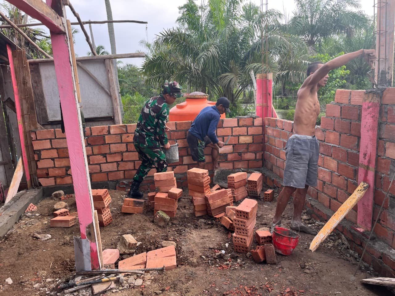 Kerja Bersama Satgas TMMD 127 Kodim 0430/BA dan Warga Percepat Pembangunan RTLH Bapak Paiman