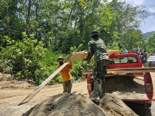 Kolaka Timur, 24 Oktober 2025 — Di tengah teriknya matahari, anggota Satuan Tugas (Satgas) TMMD ke-126 Kodim 1412/Kolaka tetap menunjukkan semangat juang yang tinggi. Kali ini, para prajurit bersama masyarakat Desa Tanggauna, Kecamatan Ueesi, Kabupaten Kolaka Timur, bekerja keras menurunkan kayu yang akan digunakan untuk persiapan pengecoran Deker ke-7.