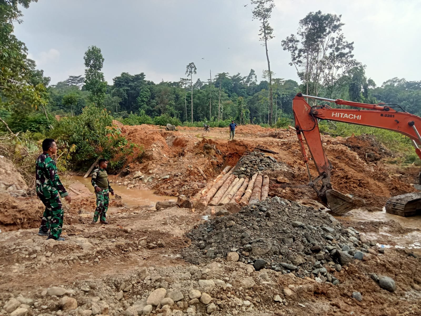 Di lokasi terlihat alat berat terus beroperasi untuk membantu proses pembentukan badan jalan, sementara sebagian personel lainnya mengerjakan bagian drainase serta pembuatan jembatan darurat.