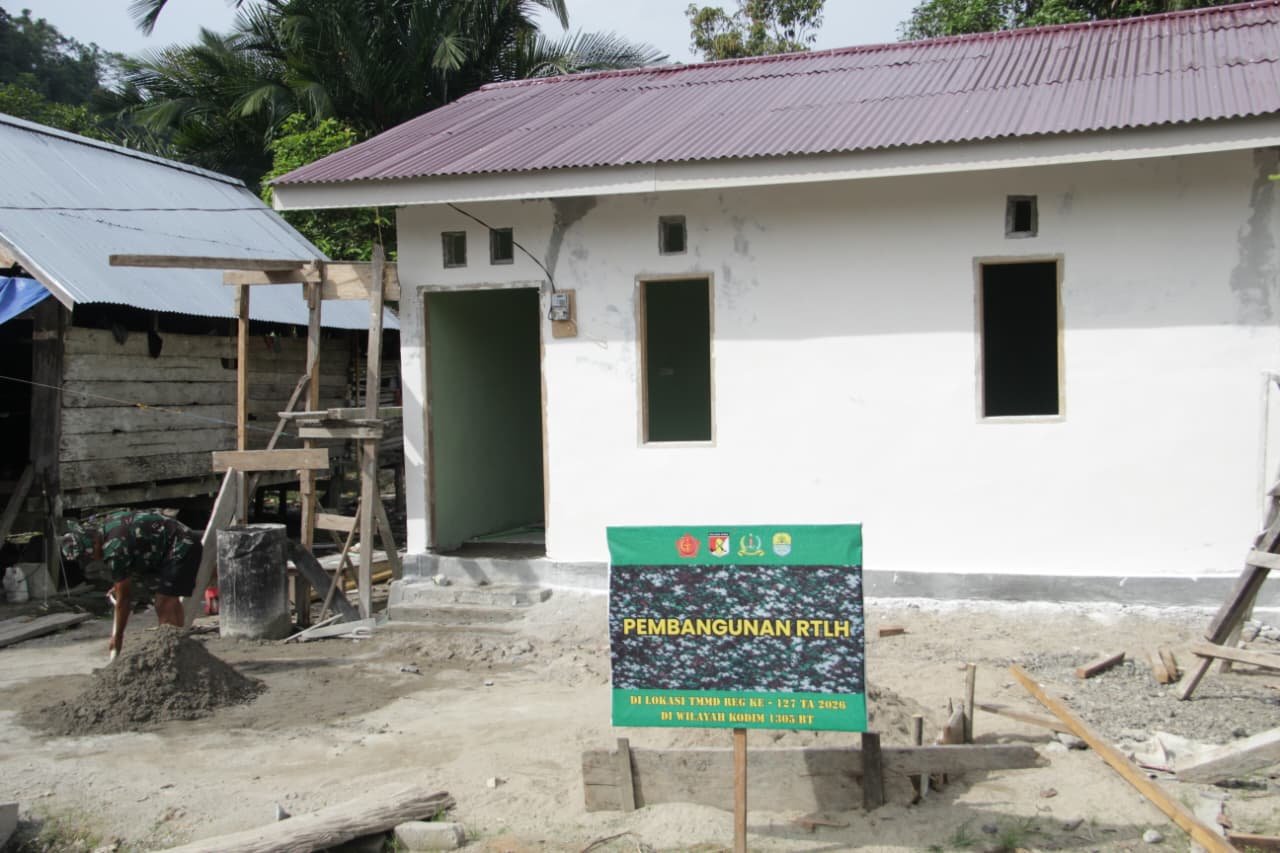 Tolitoli – Proses pembangunan Rumah Tidak Layak Huni (RTLH) di Dusun Ogomolobu, Desa Oyom, Kecamatan Lampasio, Kabupaten Tolitoli terus mengalami kemajuan. Pada Kamis (5/3/2026), Satgas TMMD ke-127 yang berasal dari Kodim 1305/Buol Tolitoli melaksanakan kegiatan pembangunan dengan intensif.