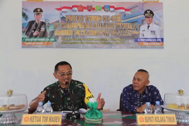 Kolaka Timur, 19 Oktober 2025 – Dalam sambutannya saat pelaksanaan kunjungan kerja Tim Pengawas dan Evaluasi (Wasev) TMMD ke-126, Ketua Tim Wasev Kolonel Inf Fajar Ali Nugraha, S.Sos., M.Han, menyampaikan apresiasi dan ucapan terima kasih kepada Pemerintah Daerah Kabupaten Kolaka Timur atas dukungan dan peran aktifnya dalam menyukseskan Program TNI Manunggal Membangun Desa (TMMD) ke-126 Kodim 1412/Kolaka.