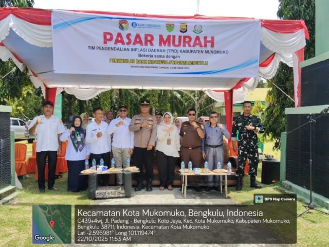 Pasar murah yang juga dikenal operasi pasar dalam upaya mengendalikan inflasi daerah ini berlangsung di halaman Koramil 428-01/MukoMuko, Kodim 0428/MukoMuko, Rabu (22/10/2025).