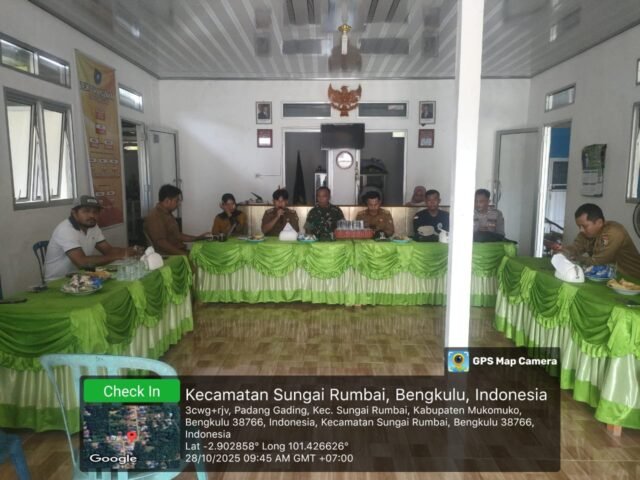 MukoMuko – Bersama Staf Kecamatan serta Pemdes menghadiri Penentuan Titik Nol Rencana Pembangunan Drainase menggunakan Anggaran Dana Desa di Desa Padang Gading, Kecamatan Sungai Rumbai, Kabupaten MukoMuko, Selasa (28/10/2025).