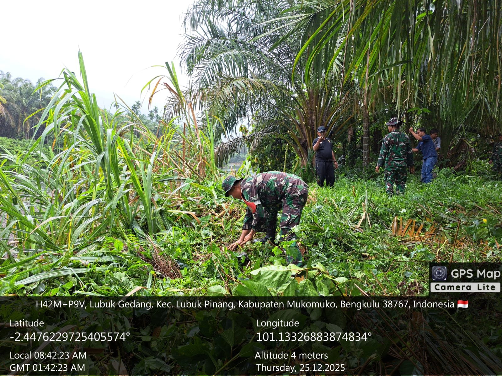 Mukomuko – Dalam upaya mendukung program pelestarian lingkungan dan menjaga keseimbangan daerah aliran sungai, Kodim 0428/Mukomuko melalui Koramil 428-01/Mukomuko menggelar kegiatan penghijauan di Desa Lubuk Gedang, Kecamatan Lubuk Pinang, Kabupaten Mukomuko. Acara tersebut berlangsung pada Kamis, 25 Desember 2025 mulai pukul 08.00 WIB dan dipimpin langsung oleh Kapten Inf Desmayontos, selaku Danramil.