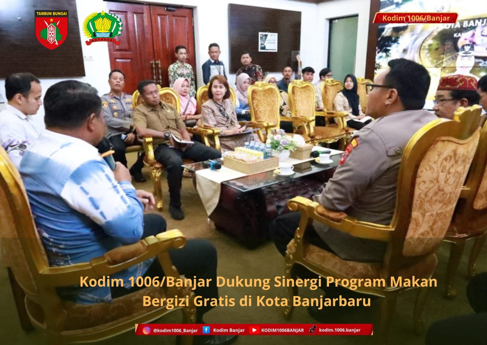 Banjarbaru – Kodim 1006/Banjar menyatakan komitmennya mendukung penuh pelaksanaan Program Makan Bergizi Gratis (MBG) di wilayah Kota Banjarbaru. Hal ini disampaikan oleh Pasi Intel Kodim 1006/Banjar, Kapten Inf Arif Triyantoko, mewakili Dandim 1006/Banjar dalam kegiatan Rapat Koordinasi bersama Tim Pemantauan/Peninjauan Lapangan Sekretariat Dukungan Kabinet, Kementerian Sekretariat Negara Republik Indonesia, Kamis (16/10/2025), bertempat di Ruang Tamu Wali Kota Banjarbaru, Jalan Panglima Batur No. 1, Kelurahan Komet, Kecamatan Banjarbaru Utara.