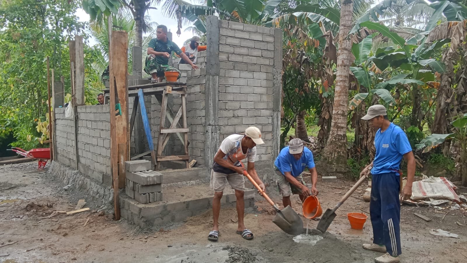 Hari ini, anggota Satgas bersama dengan masyarakat melakukan berbagai kegiatan, termasuk pemasangan dinding, penyempurnaan lantai, serta penataan saluran pembuangan air. Pengerjaan ini dilakukan secara bertahap dengan memperhatikan ketelitian, sehingga hasil yang dicapai dapat bertahan lama dan bermanfaat bagi warga.