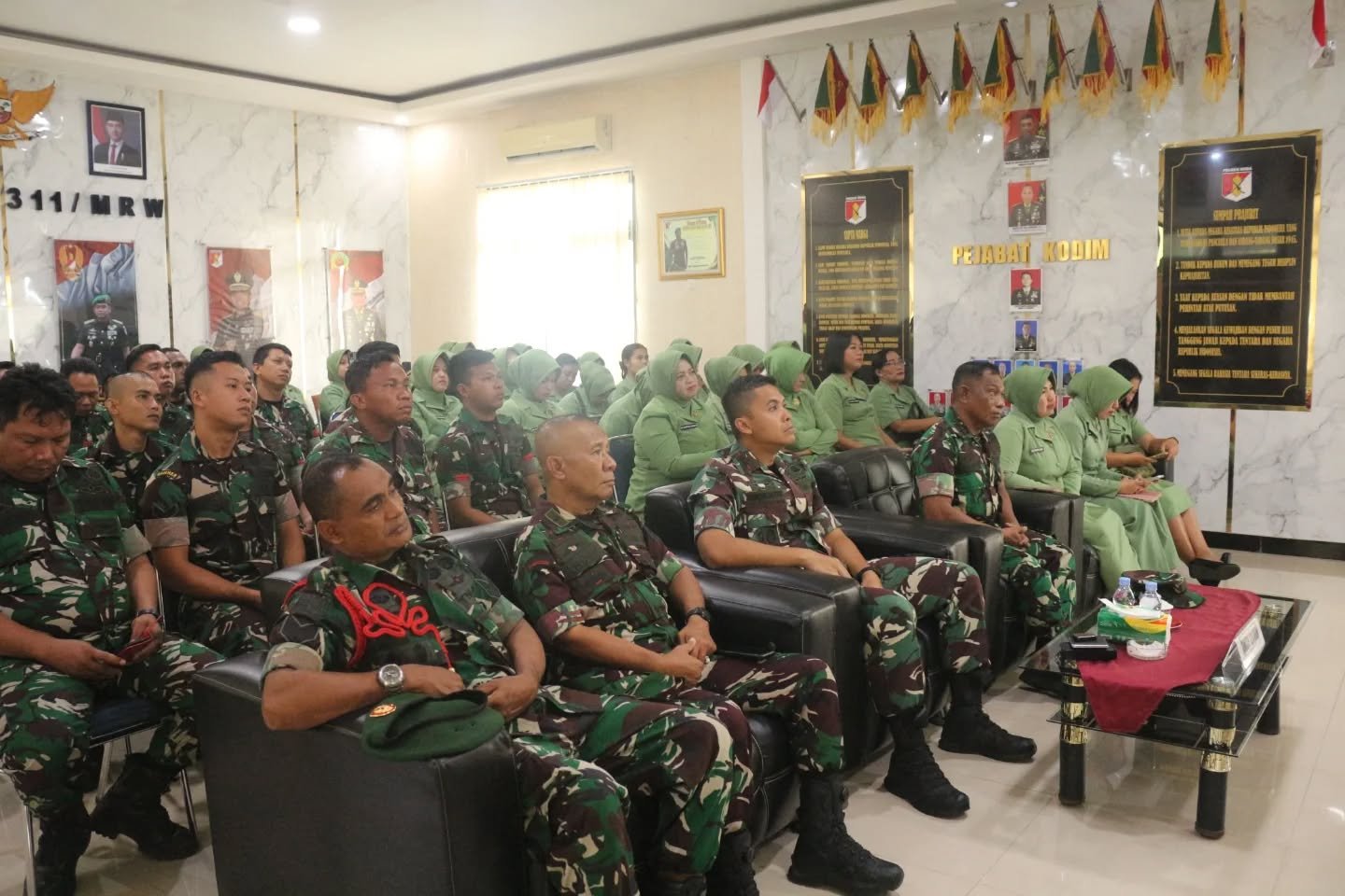 Morowali, 14 Januari 2026 – Kodim 1311/Morowali melaksanakan Nonton Bareng (Nobar) Kartika Podcast yang membahas Tabungan Wajib Perumahan (TWP), yang dihadiri oleh Letkol Inf Abraham S. Pandjaitan, M.S.S., serta para perwira dan anggota Persit KCK Cabang LXVII Dim 1311/Morowali. Kegiatan ini berlangsung di Aula Ksatria Kodim yang terletak di Jalan KTM, Desa Bahomohoni, Kecamatan Bungku Tengah, Kabupaten Morowali.