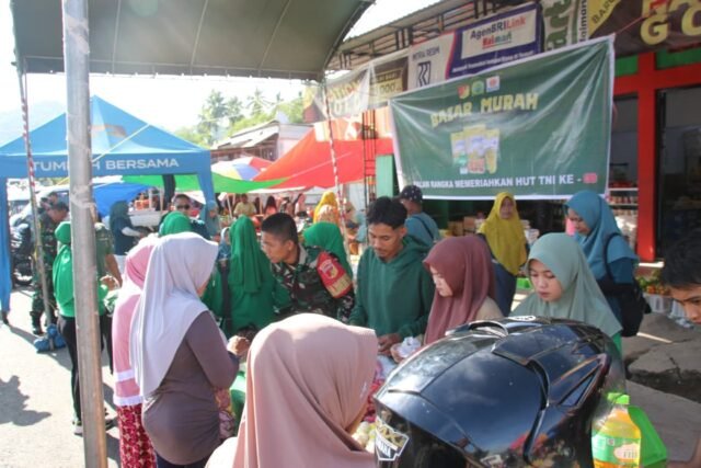 BOALEMO — Komando Distrik Militer (Kodim) 1316/Boalemo menggandeng Pemerintah Kabupaten Boalemo melalui Dinas Pertanian menggelar Bazar Murah di Pasar Tilamuta, Desa Hungayonaa, Kecamatan Tilamuta, Kabupaten Boalemo. Kegiatan yang dilaksanakan pada Kamis, 18 September 2025, ini merupakan bagian dari rangkaian peringatan HUT ke 80 TNI PRIMA dan bertujuan untuk membantu masyarakat memenuhi kebutuhan pokok dengan harga terjangkau.