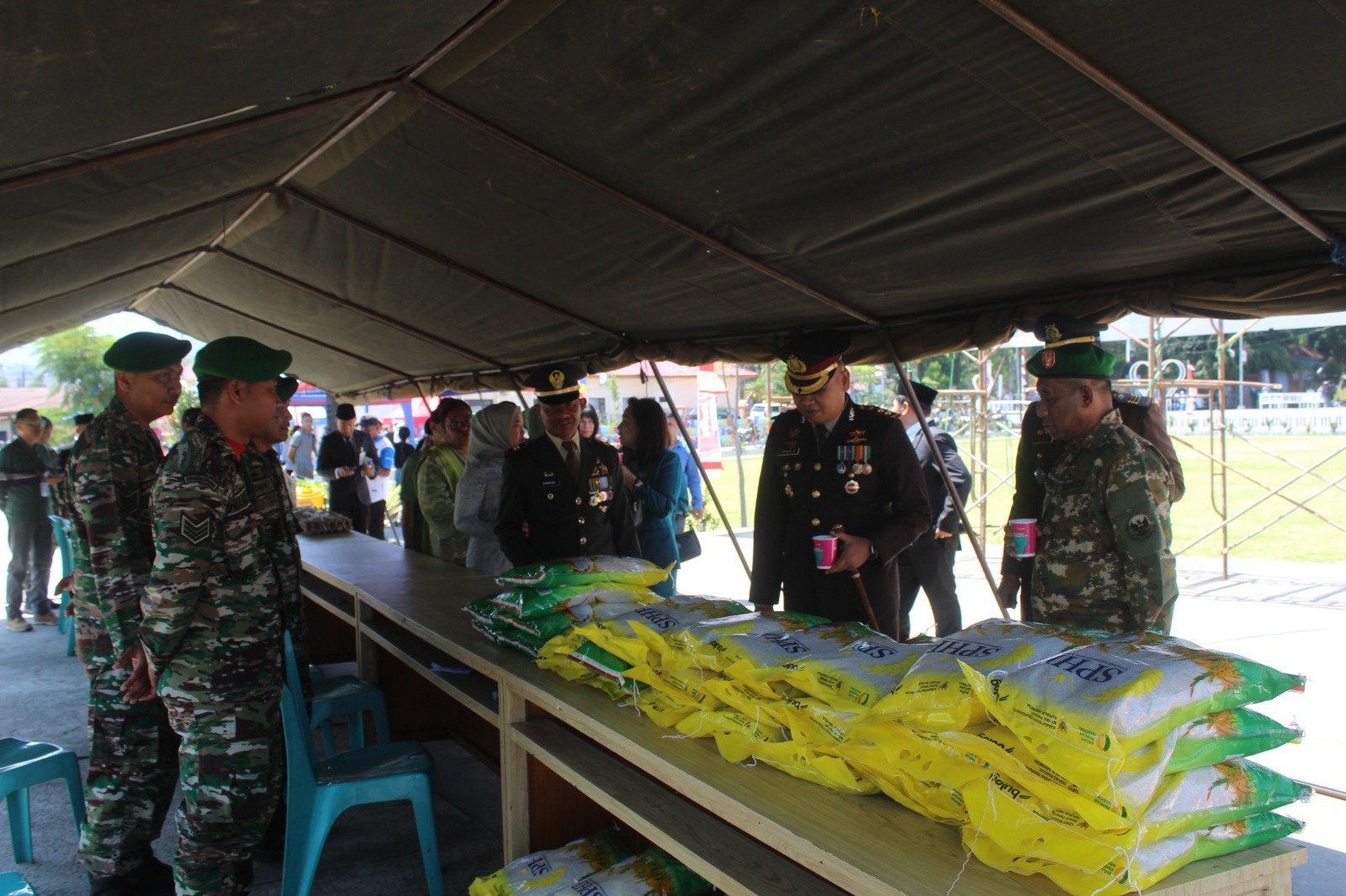 Di tengah ramainya transaksi dan suasana penuh kekeluargaan, Pasi Ter Kodim 1612/Manggarai, Kapten Arh Lipris M. Saefatu, bersama anggota Kodim lainnya terlihat aktif melayani warga dan memastikan kegiatan berjalan lancar. Interaksi hangat antara prajurit dan masyarakat menggambarkan jalinan sinergi yang kuat antara TNI dan rakyat.
