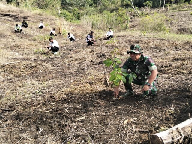 SUMBA BARAT – Dalam rangka memperingati Hari Ulang Tahun (HUT) TNI ke-80, Kodim 1613/Sumba Barat menggelar kegiatan penanaman pohon bersama pemerintah Desa Puu Mawo dan masyarakat di Desa Puu Mawo, Kecamatan Loli, Kabupaten Sumba Barat, pada Kamis (18/9/2025).