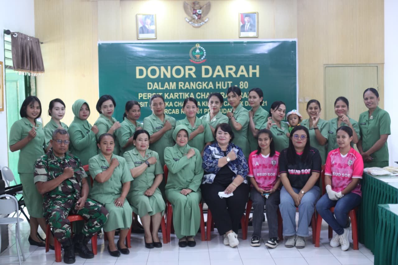 Timor Tengah Selatan – Dalam rangka merayakan Hari Ulang Tahun (HUT) Korem 161/Wira Sakti yang ke-65 serta HUT Persit Kartika Chandra Kirana (KCK) yang ke-80 pada tahun 2026, Kodim 1621/Timor Tengah Selatan (TTS) melaksanakan kegiatan donor darah di Aula Makodim 1621/TTS yang terletak di Jalan Gajah Mada, Kelurahan Cendana, Kabupaten TTS, pada hari Kamis (05/02/2026).