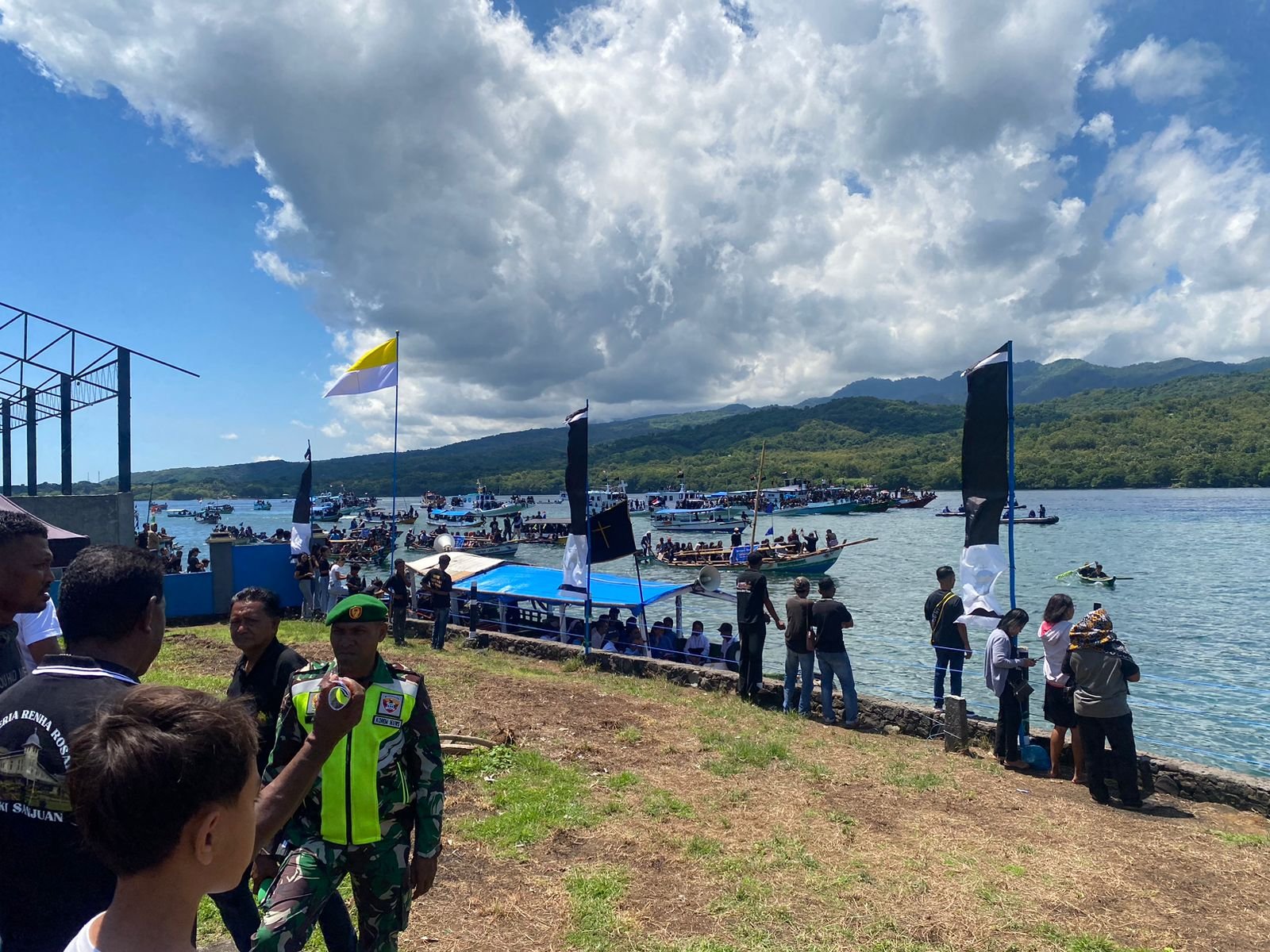 Larantuka – Dalam upaya mendukung kelancaran rangkaian perayaan Semana Santa 2026, anggota Kodim 1624/Flotim, Sertu Alexandre Soares dan Pratu Ronaldo Maya, mengambil bagian dalam pengamanan prosesi bahari yang merupakan tradisi sakral masyarakat Larantuka, Kabupaten Flores Timur pada Jumat, 3 Maret 2025.