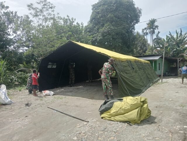 NABIRE — Sebagai bentuk kepedulian dan tanggap darurat terhadap bencana alam yang melanda wilayah Kabupaten Nabire, Kodim 1705/Nabire membangun tenda serba guna di sejumlah titik pengungsian warga terdampak banjir.