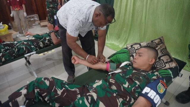 Nabire ~ Dalam rangka menyambut Hari Ulang Tahun Tentara Nasional Indonesia (TNI) ke-80, Kodim 1705/Nabire bersama Personil TNI Se Garnisun Nabire melaksanakan kegiatan Bakti Kesehatan bagi masyarakat di wilayah teritorialnya, Sabtu (21/09/2025).