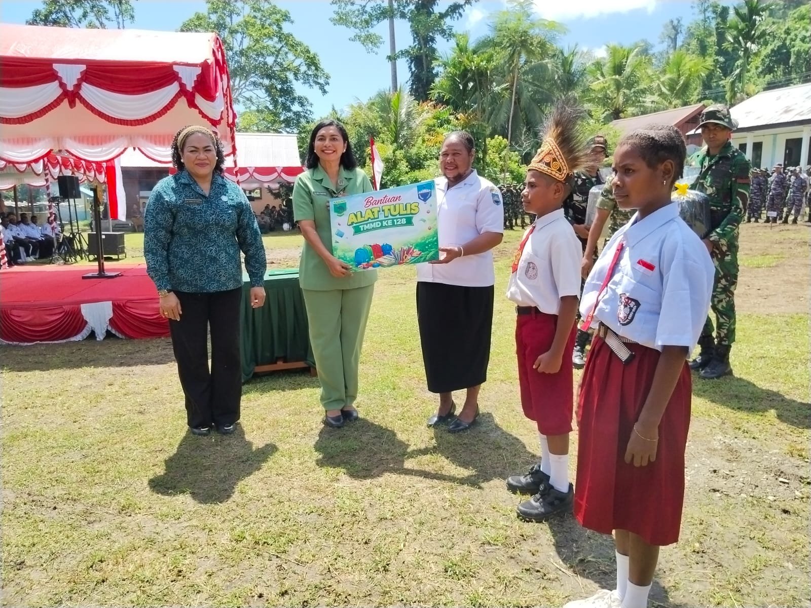 Acara penyerahan dilaksanakan oleh Ketua Persit Kartika Chandra Kirana Daerah XVIII/Kasuari, yang secara simbolis menyerahkan buku-buku tulis tersebut kepada para pelajar. Selain memberikan bantuan bahan ajar, Kodim 1801/Manokwari juga menginisiasi rehabilitasi SD Inpres Asay, yang merupakan bagian dari program tambahan dalam kegiatan TMMD kali ini.