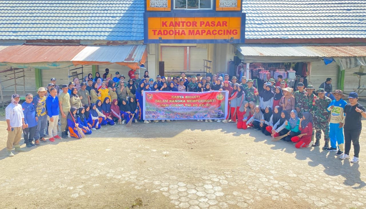 Kodim 1431/Bombana menggelar kegiatan Karya Bakti bersih-bersih di Pasar Sentral Todoha Mappacing, Desa Tapuahui, Kecamatan Rumbia Tengah pada Jumat (12/12/2025) sebagai bagian dari peringatan Hari Juang TNI Angkatan Darat ke-80. Kegiatan ini mengangkat tema ‘TNI AD Manunggal Dengan Rakyat Untuk Indonesia Bersatu, Berdaulat, Sejahtera dan Maju’. Sekitar 200 peserta yang terdiri dari TNI, Polri, ASN, pelajar, pedagang, serta masyarakat setempat berpartisipasi dalam acara bergotong royong ini.