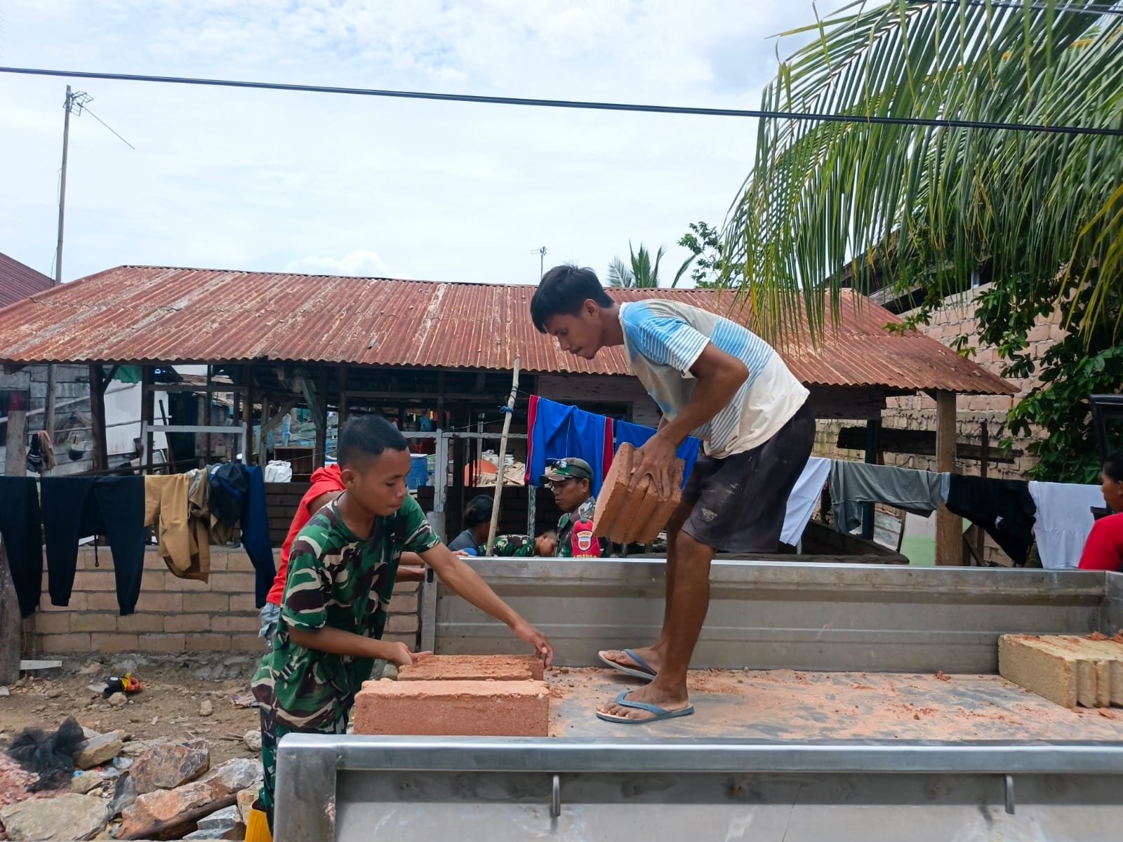 Kendari – Anggota Satgas TMMD ke-127 berkolaborasi dengan warga Kota Kendari dalam melangsir material bangunan program Rumah Tidak Layak Huni (RTLH) pada hari Senin, 23 Februari. Mereka dengan antusias menurunkan batu bata dari kendaraan sebelum memindahkannya secara manual ke lokasi pembangunan. Meskipun proses ini menuntut tenaga yang lebih, semangat para prajurit dan masyarakat tak surut demi mempercepat penyelesaian proyek.