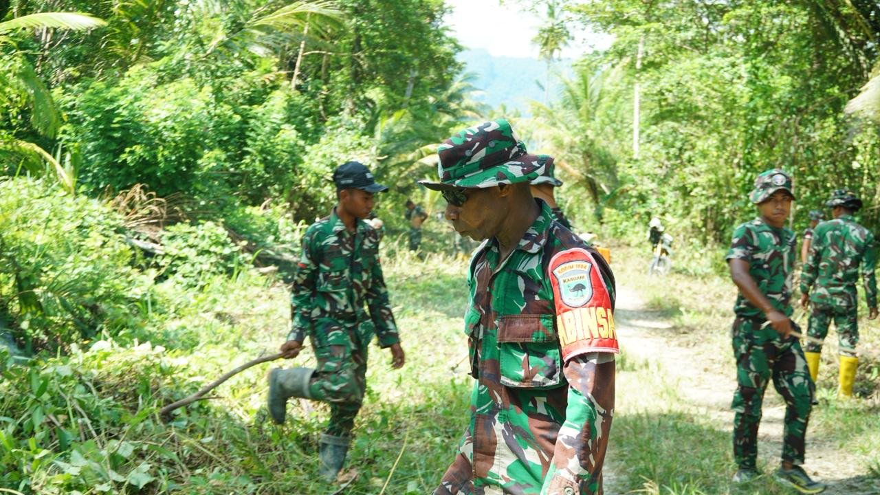 Kaimana – Pada tanggal 18 Februari 2026, kegiatan TMMD ke-127 menunjukkan semangat kerjasama antara personel Satgas TMMD dan masyarakat setempat dalam proyek pembukaan jalan di Kampung Sisir. Pekerjaan jalan dilakukan dengan cara manual, mengandalkan kehadiran anggota Satgas dan partisipasi aktif dari warga yang dengan sukarela membantu membersihkan area dan meratakan jalur yang akan menjadi akses publik.