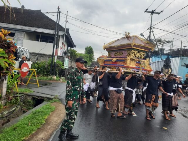 Klungkung,- Sebagai bentuk nyata pelayanan Babinsa dalam mendukung kegiatan masyarakat, Serda Bagus Babinsa Manduang Koramil 1610-01/Klungkung turun langsung melaksanakan pengawalan dan pengamanan berlangsungnya upacara keagamaan pengabenan di wilayah binaannya.