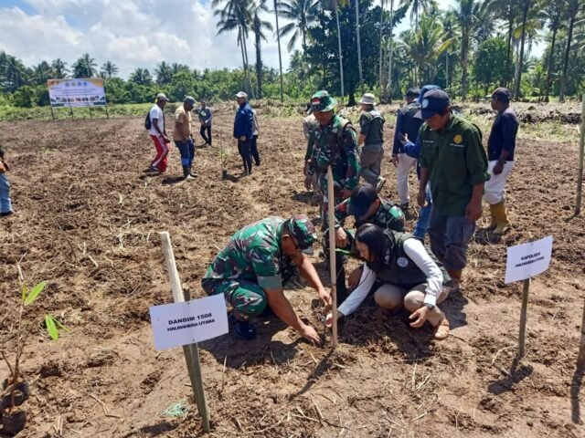 Halmahera Utara,– Kodim 1508/Tobelo bersama Pemerintah Kabupaten Halmahera Utara, Balai Perhutanan Sosial Ambon, serta unsur Forkopimda melaksanakan kegiatan Penanaman Agroforestry Pangan dan Energi di areal perhutanan sosial Desa Toliwang, Kecamatan Kao Barat. Program ini mengintegrasikan penanaman padi, jagung, dan tanaman Multi Purpose Tree Species (MPTS) seperti durian, rambutan, sengon, serta pala. Selasa (30/09/2025)