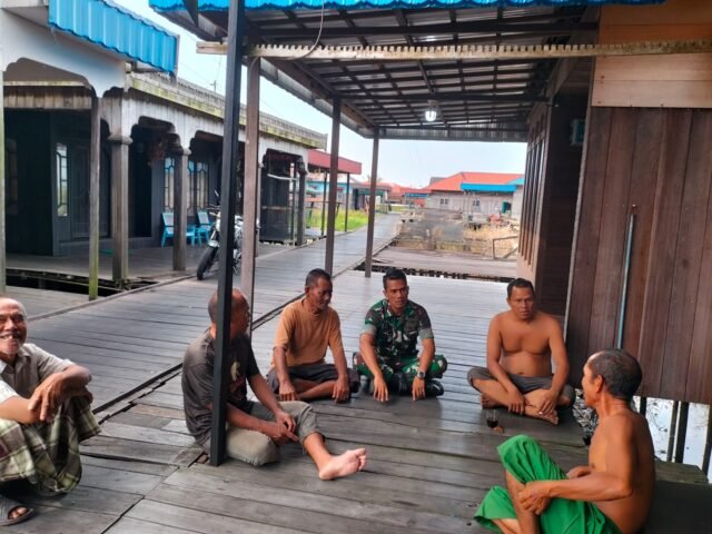 HULU SUNGAI UTARA – Babinsa Koramil 1001-11/Danau Panggang jajaran Kodim 1001/HSU-BLG Serda Mulyadi melaksanakan Komunikasi Sosial (Komsos) bersama masyarakat Desa Pandamaan, Kecamatan Danau Panggang, Kabupaten Hulu Sungai Utara, dengan tujuan menciptakan kedekatan bersama warga binaan, Minggu (27/07/2025).