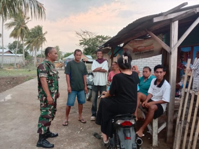 Dompu, NTB — Jumat (31/10/2025) Babinsa Koramil 1614-03/Hu’u, Sertu Edi Susanto, bersama Kepala Dusun Desa Jambu melaksanakan komunikasi sosial (Komsos) dengan warga di Dusun Pali, Desa Jambu, Kecamatan Hu’u, Kabupaten Dompu. Kegiatan ini merupakan bagian dari upaya Babinsa dalam mempererat hubungan antara TNI dengan masyarakat di wilayah binaan.