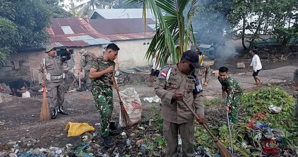 SIKKA – Anggota Koramil 1603-04/Kewapante, di bawah Kodim 1603/Sikka, melaksanakan aksi karya bakti dengan membersihkan Pasar Geliting, yang berlokasi di Kecamatan Kewapante, Kabupaten Sikka, pada Sabtu (07/02/2026). Kegiatan ini merupakan wujud nyata kepedulian TNI terhadap kebersihan lingkungan serta upaya untuk menjaga kesehatan masyarakat.
