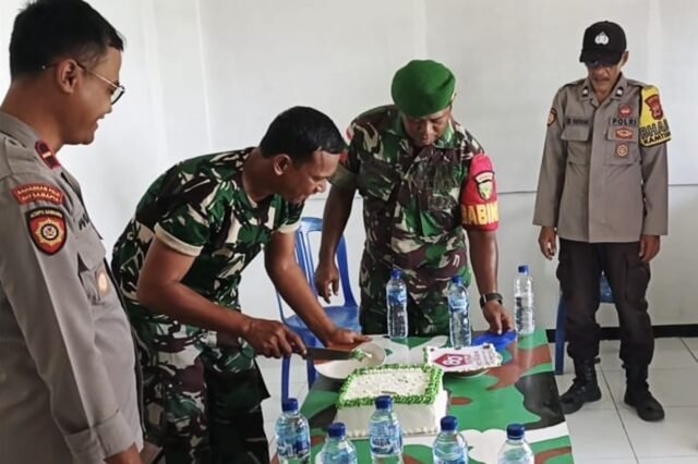 Okaba, 5 Oktober 2025 – Dalam rangka memperingati Hari Ulang Tahun ke-80 Tentara Nasional Indonesia (TNI), Koramil 1707-03/Okaba menerima kunjungan istimewa dari Kapolsek Okaba Ipda Wilus beserta anggota, Minggu (5/10/2025). Dalam kunjungan penuh keakraban tersebut, Kapolsek Okaba memberikan kue ulang tahun sebagai bentuk ucapan selamat dan penghargaan kepada jajaran TNI.
