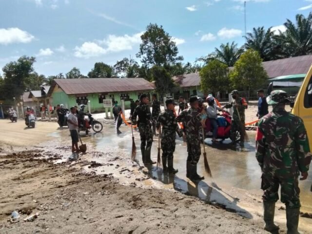 Dikatakan Danposramil Tripa Makmur Pelda Iputu Bisma, pasca banjir yang sebelumnya melanda Nagan Raya yang mengakibatkan beberapa fasilitas umum seperti masjid dan rumah warga penuh dengan tanah bekas lumpur yang terbawa banjir.