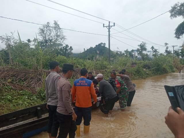 Aceh Selatan – Curah hujan dengan intensitas tinggi yang mengguyur wilayah Kabupaten Aceh Selatan sejak Senin pagi (10/11/2025) menyebabkan sejumlah kawasan di Kecamatan Kluet Tengah dan Kluet Utara dilanda banjir. Genangan air yang cukup tinggi juga menutup sebagian ruas jalan lintas utama yang menghubungkan kedua kecamatan tersebut, sehingga sempat menghambat aktivitas masyarakat.