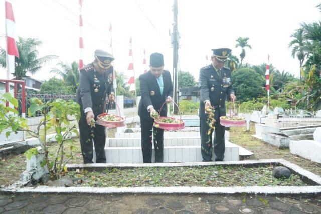 Meulaboh – Korem 012/TU menggelar Upacara Peringatan Hari Pahlawan TA 2025. Korem 012/TU melaksanakan kegiatan Ziarah Nasional dan Upacara Tabur Bunga di Taman Makam Pahlawan (TMP) Rundeng, Kecamatan Johan Pahlawan, Aceh Barat, Senin (10/11/2025).