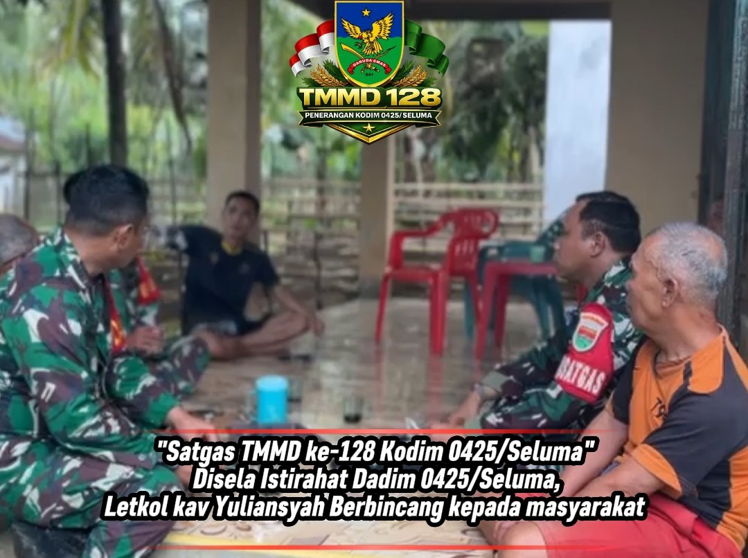 Seluma – Saat melaksanakan kegiatan TNI Manunggal Membangun Desa (TMMD) ke-128, Komandan Kodim 0425/Seluma, Letkol Kav Yuliansyah, memanfaatkan waktu istirahatnya untuk berkunjung ke rumah salah satu warga di Desa Lubuk Lagan, Kecamatan Talo Kecil, pada hari Senin (27/04/2026).