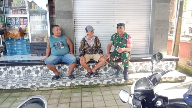 Bangli – Dalam rangka mempererat hubungan silaturahmi dan memperkuat kemanunggalan TNI dengan rakyat, Babinsa Desa Undisan Koramil 1626-03/Tembuku, Sertu I Wayan Budiarta, melaksanakan kegiatan Komunikasi Sosial (Komsos) bersama warga binaan di Banjar Undisan Kelod, Desa Undisan, Kecamatan Tembuku, Kabupaten Bangli, Senin (20/10/2025).