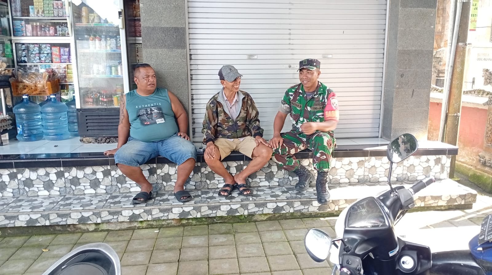 Dalam kesempatan tersebut, Babinsa berinteraksi secara langsung dengan warga, membangun suasana keakraban sambil menyampaikan imbauan agar masyarakat senantiasa menjaga keamanan, ketertiban, serta menciptakan lingkungan yang aman dan kondusif.