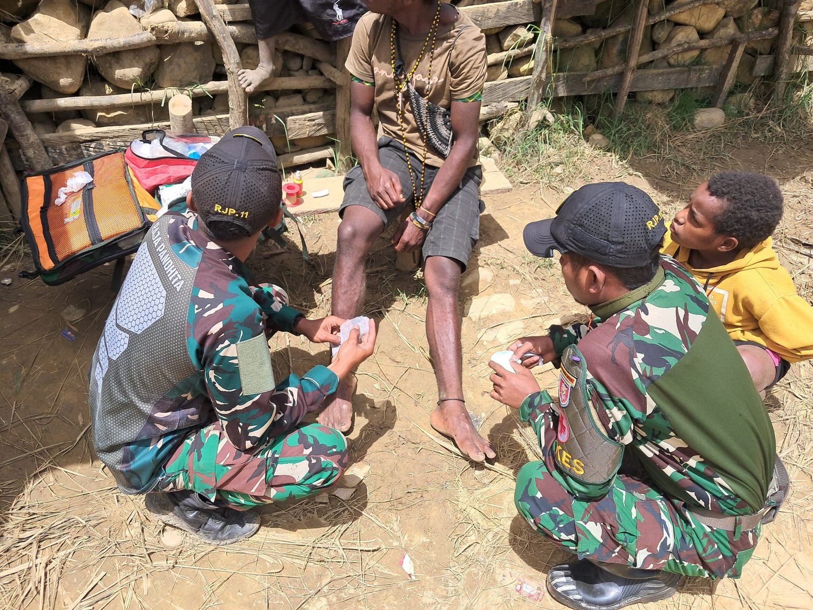 LANNY JAYA – Satgas Yonif 614/RJP kembali menunjukkan komitmen dalam mendukung kesejahteraan masyarakat Papua melalui pelaksanaan pelayanan kesehatan di Pos Malagai kampung Numbokawi, Distrik Malagai, Papua Pegunungan, Jum’at (08/8/2025).