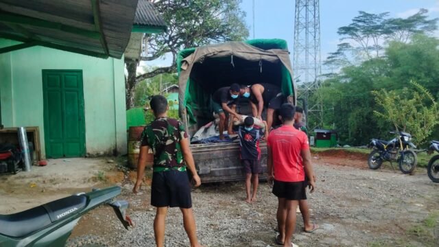 Dalam pantauan di lokasi, terlihat semangat gotong royong yang tinggi. Prajurit TNI bahu-membahu menurunkan dan memindahkan tumpukan sak semen dari truk, seperti yang terlihat dalam foto. Pasokan material yang lancar ini menjadi kunci vital untuk menjaga momentum pengecoran jalan rabat beton yang merupakan salah satu sasaran utama TMMD kali ini.