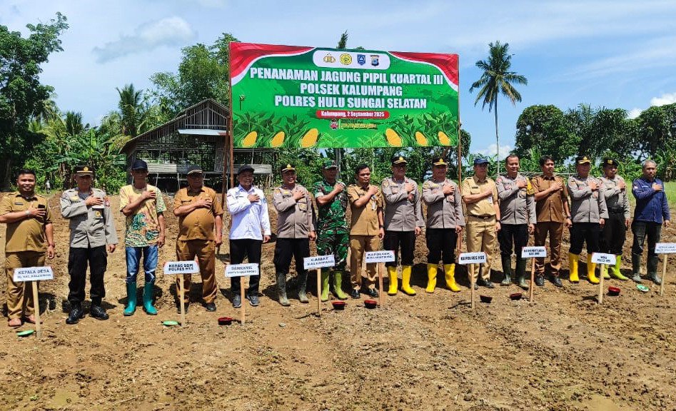 HULU SUNGAI SELATAN – Berikan dukungan dan siap untuk bersinergi dengan Polres Hulu Sungai Selatan (HSS), Lettu Inf Tugino Danramil 1003-06/Simpur-Kalumpang ikuti dan hadiri kegiatan penanaman jabyng pipil Kuartal III yang dipimpin langsung oleh AKBP Muhammad Yakin Rusdi dan pada momen tersebut merupakan salah satu upaya untuk mewujudkan wilayah yang mempunyai ketahanan dan swasembada pangan sesuai dengan program pemerintah. Rabu (3/9/25)