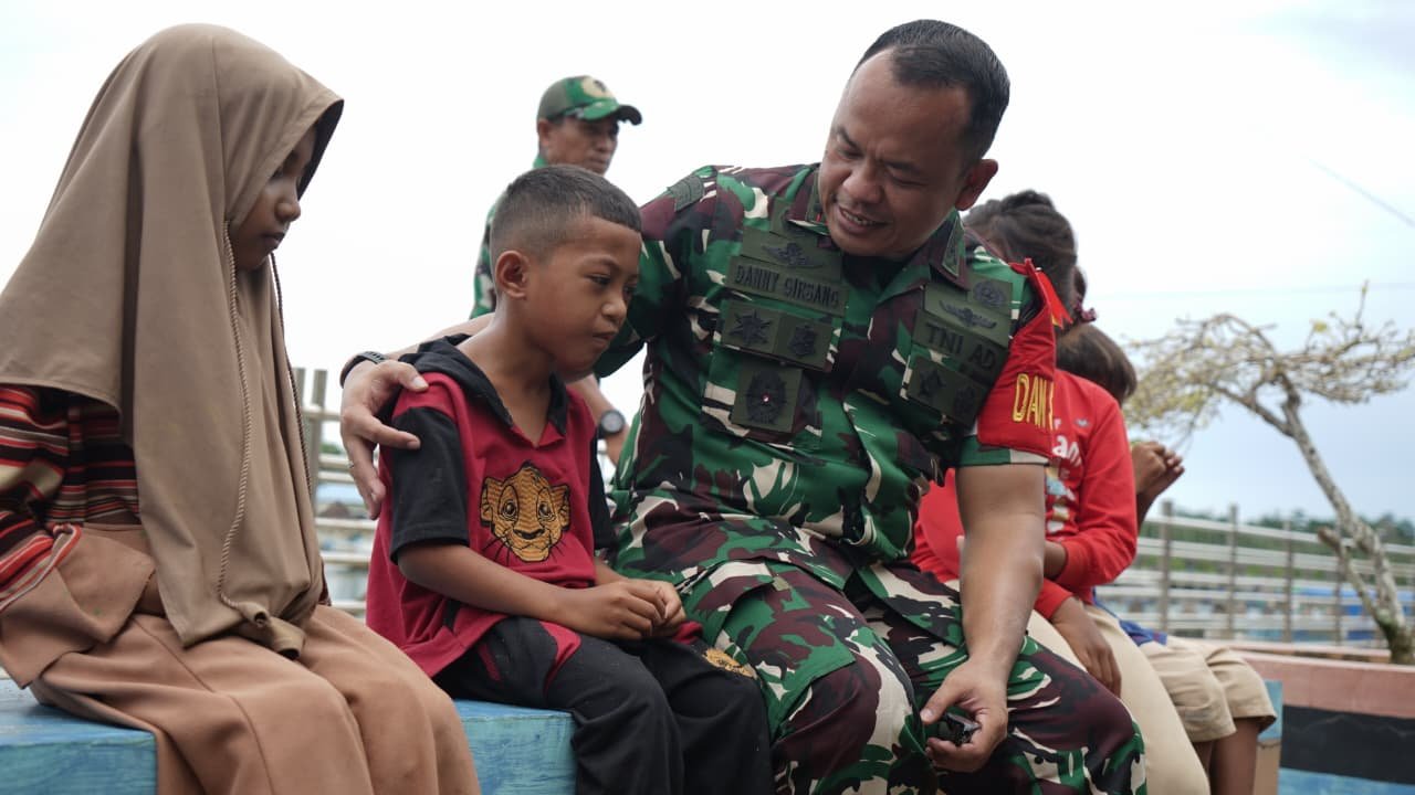 Interaksi hangat terlihat saat Letkol Arm Danny berbincang akrab dengan warga dari beragam latar belakang. Pendekatan humanis yang ditunjukkan menggambarkan komitmen TNI untuk menjalin hubungan harmonis yang saling mempercayai.