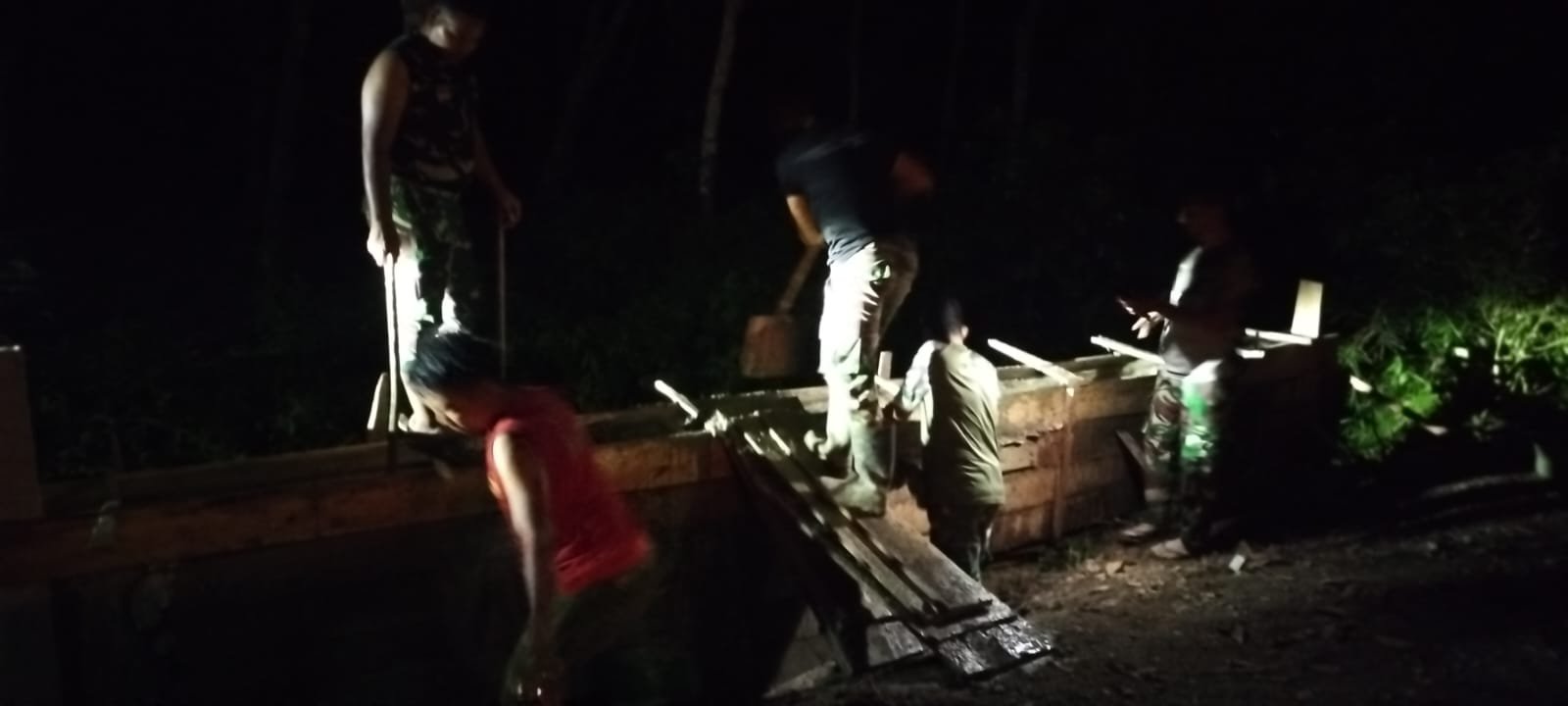 Proses kerja berlangsung secara terorganisir dengan pembagian tugas yang jelas. Sebagian prajurit terpaku pada penghalusan dinding, sedangkan yang lainnya bekerja sama dengan warga yang mempersiapkan campuran semen dan mendukung distribusi material proyek. Sinergi ini menunjukkan semangat profesionalisme dan gotong royong yang tinggi.