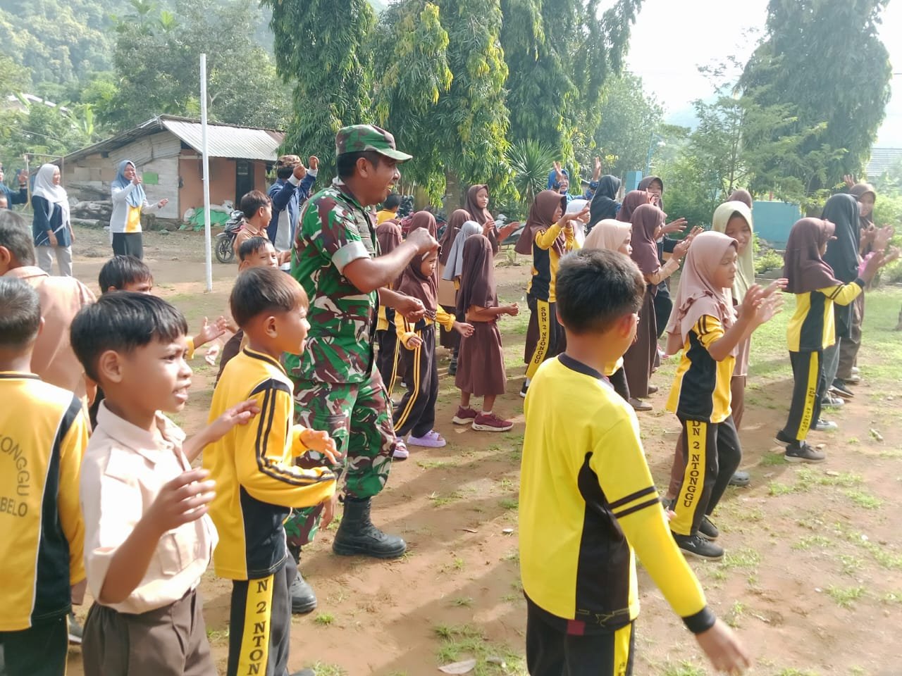 Kabupaten Bima – Dalam upaya mengembalikan semangat belajar anak-anak setelah insiden yang mengguncang, Babinsa Desa Ntonggu dari Koramil Kodim 1608/Bima melaksanakan acara ‘Senam Ceria’ pada Sabtu, 17 Januari 2026. Kegiatan ini diadakan untuk membantu siswa SDN 02 Ntonggu pulih dari trauma yang ditimbulkan akibat penyegelan sekolah oleh oknum tertentu beberapa waktu lalu.