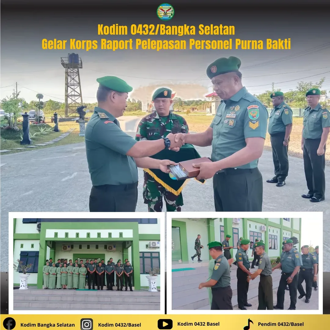 BANGKA SELATAN – Dalam rangka memberikan penghargaan kepada prajurit yang telah mengabdikan diri, Kodim 0432/Bangka Selatan melaksanakan Korps Raport Pelepasan Personel Purna Bakti. Acara yang berlangsung meriah ini diselenggarakan di Makodim 0432/Bangka Selatan, Jalan Raya Gadung Koba, Desa Bikang, Kecamatan Toboali, Kabupaten Bangka Selatan pada Selasa (3/2/2026).