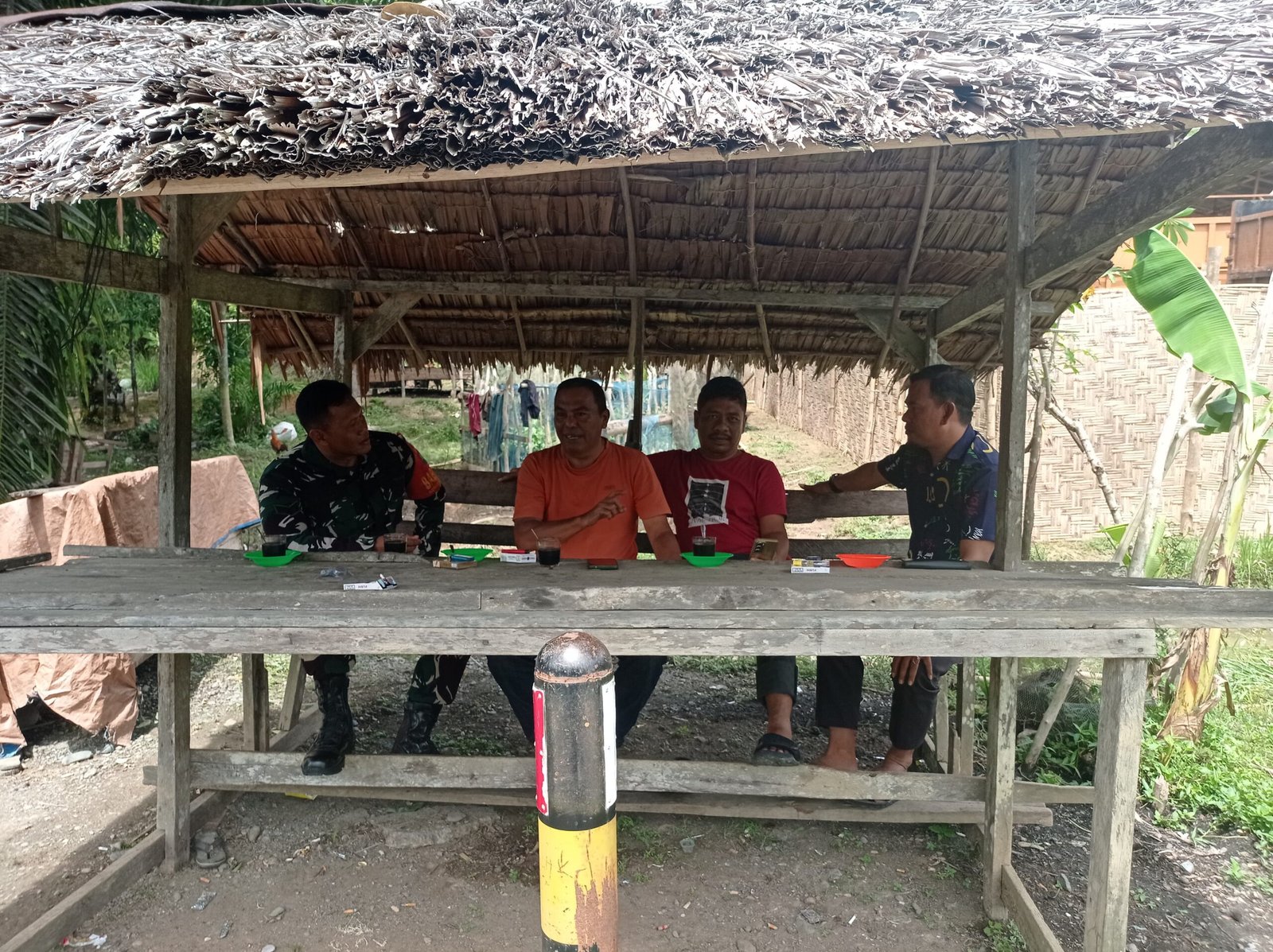 ACEH BARAT – Babinsa Koramil 02/Woyla Kodim 0205/Abar Sertu M.Andri Setiawan Melaksanakan Komsos (Komunikasi sosial) dengan tokoh Masyarakat tentang pentingnya menjaga kerukunan antar warga di Desa Pulo Ie Kec.Woyla Kab.Ac3h Barat ,Minggu (14/09/2025).