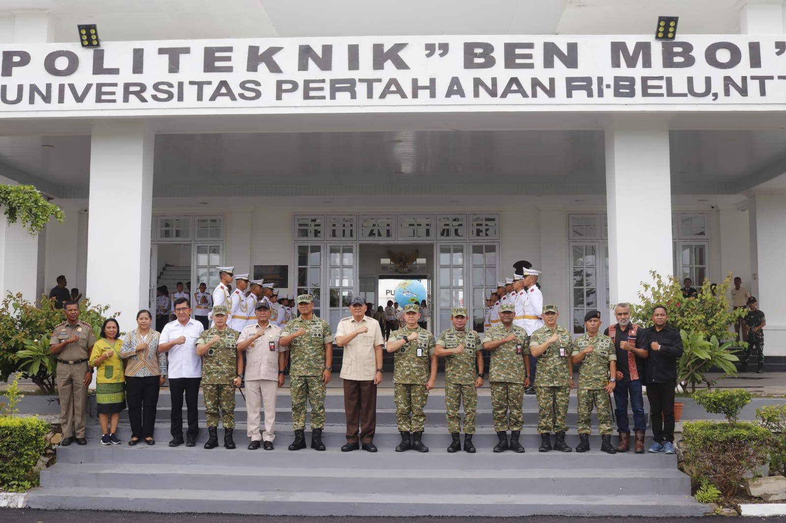 Setelah menjalani penyambutan yang hangat, Menhan RI melanjutkan agenda ke Fakultas Vokasi Logistik Militer Universitas Pertahanan Republik Indonesia Politeknik Mben Boy yang berlokasi di Desa Fatuketi, Kecamatan Kakuluk Mesak, dikenal sebagai pusat pendidikan pertahanan.