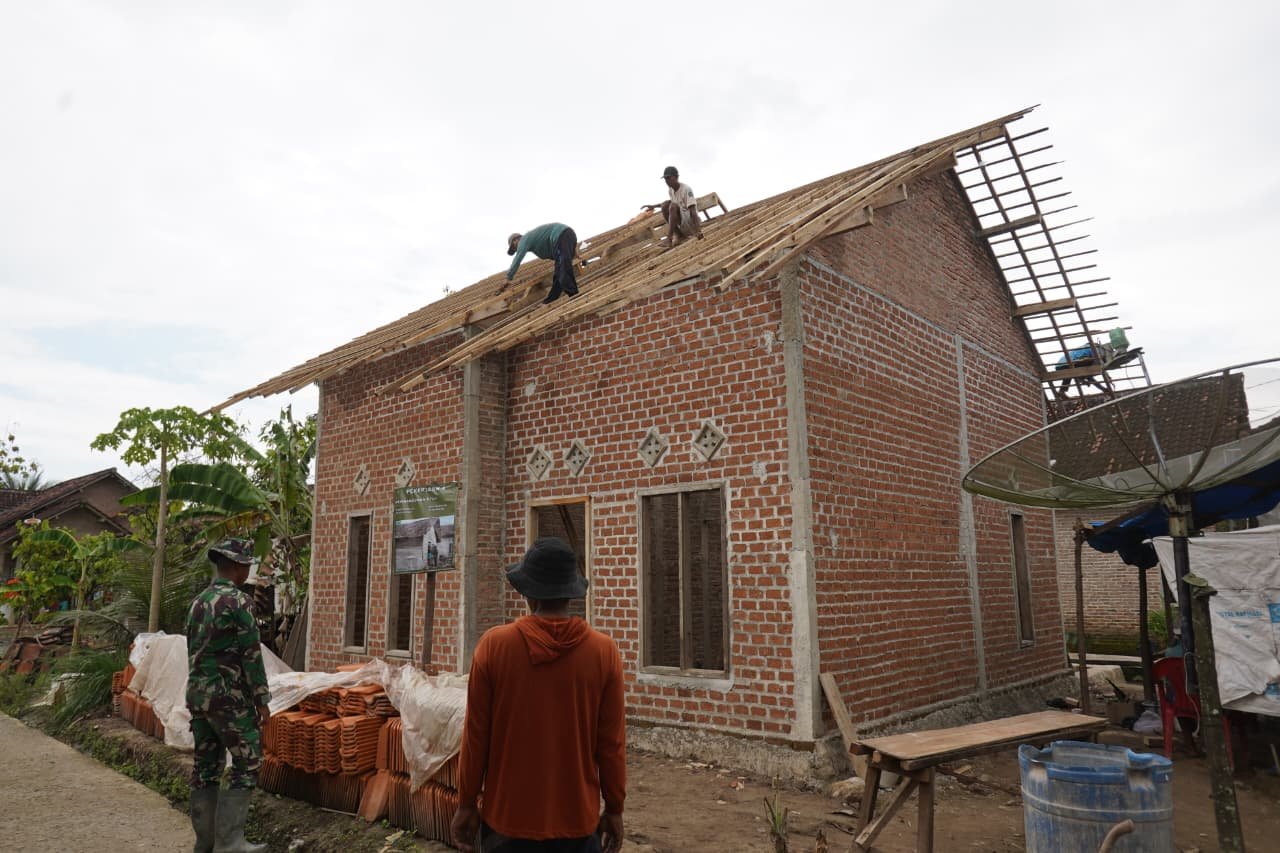 Pesawaran – Proyek pembangunan Rumah Tidak Layak Huni (RTLH) dalam rangka program TMMD ke-127 yang dikelola oleh Kodim 0421/LS menunjukkan kemajuan yang signifikan. Saat ini, rumah milik Sdr. Ngadino telah mencapai fase penting yakni persiapan untuk pemasangan genteng.